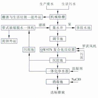 (6)一體化凈水器出水自流入消毒池,經投加次氯酸鈉消毒后排放。