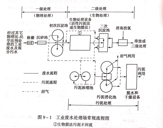 為達到國家污水排放標準,一般的廢水處理場都采用一級處理(物理法或化學法)、二級生物法處理的處理流程..